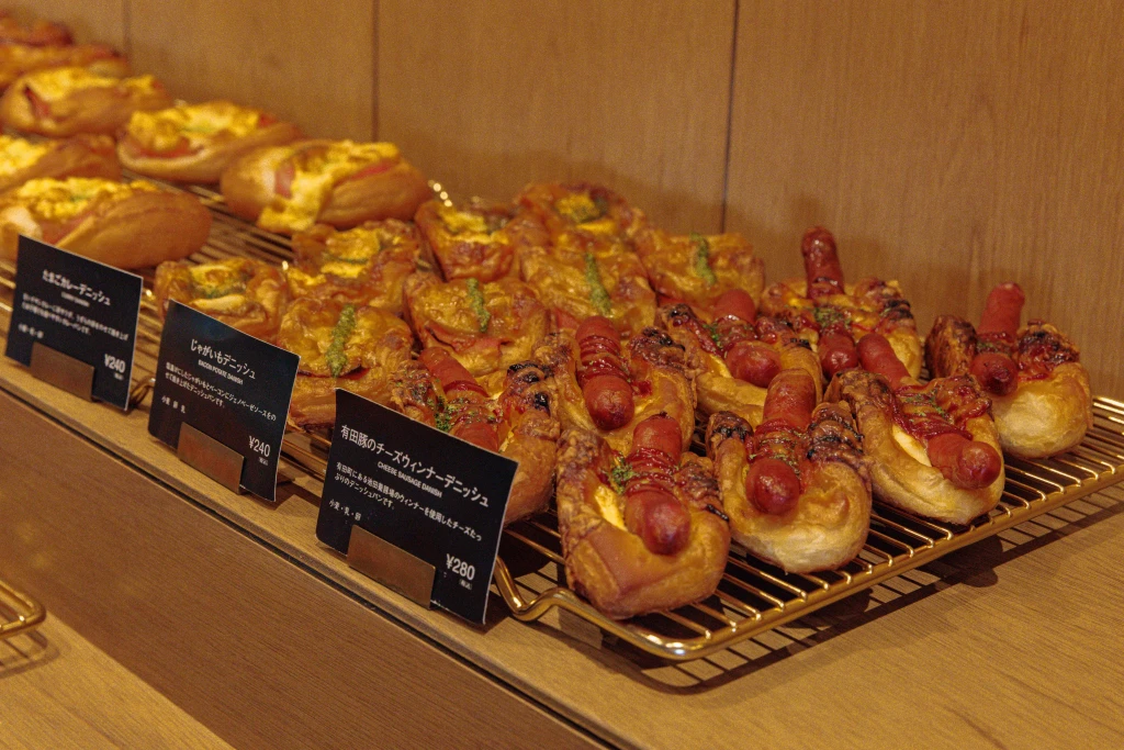 有田豚のチーズウィンナーパンは、まるぶんのベーカリーでも特に人気の高い一品です。